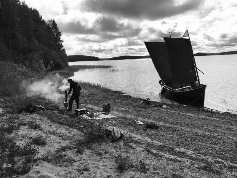 Ночью ветер развернулся на 180 градусов и усилился до крепкого. Снова лавировка у нас, собираемся ехать на север, в Почезерский погост. Вершинино подверглось нападению лесорубов. Теперь они здесь везде шатаются с полотенцами вместо штанов и голым торсами. Вечером после бани делают селфи, потом ищут ключи от машин. Местные говорят — это ежегодное нашествие.