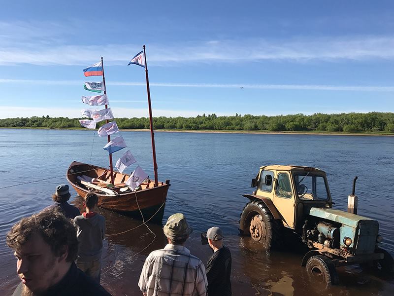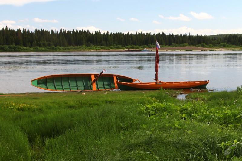 Экспедиция по реке Мезень на деревянных лодках-верховках, шитых мастером традиционного поморского судостроения.