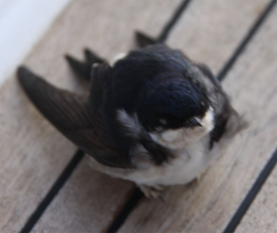 Все утро провозился с птичкой. Похожа на ласточку. Вылезла утром из своего логова — я ей принес воды. Сначала шарахнулась от меня, потом сама подошла и залезла на ладонь. Сидела долго, грелась, наверное, час. Я умилялся конечно, «жалко птичку»… Она, видимо, расслабившись  в крепкой  мужской руке, накакала туда же. Посадил ее обратно под штурвал, а она вылезла и стала требовать вернуть ее обратно на ручки! В это время как раз началась кутерьма с мотором, постановка грота (до этого  шли под мотором и генуей, довольно удобный режим, когда надо идти против ветра и сильной волны в узостях, лодка идет острыми галсами хорошим ходом и не колотится о волну). А птичка все не отстает от меня, лезет на ногу, под штурвалом сидеть никак не хочет! Пришлось срочно искать ей коробочку. Положил туда перчатки и кусок хлеба, вроде, успокоилась. Сидит теперь в комфорте, не знает про наши проблемы. Хотя ей тоже, небось, хватило, пока до нас добралась… Тоже бензин кончился.