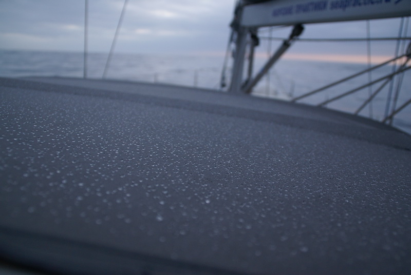 Около двух ночи ветер стих до 13 узлов, небо очистилось, Лодка легко шла на автопилоте. Удалось поспать пару часов на банке. Теперь, раздувает.