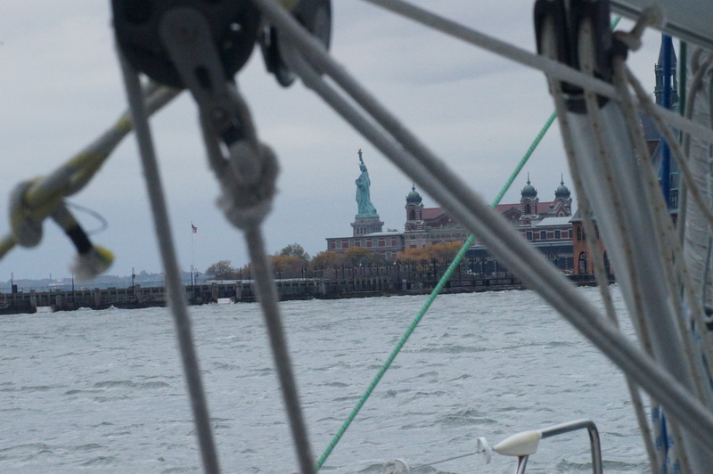 0910, выбрали якорь, открыли геную и пошли вниз по течению в Liberty Landing марину, с которой у нас уже была договоренность, переждать пару дней пока не пройдет непогода.  Это место нам рекомендовали как самое безопасное в Гудзоне.