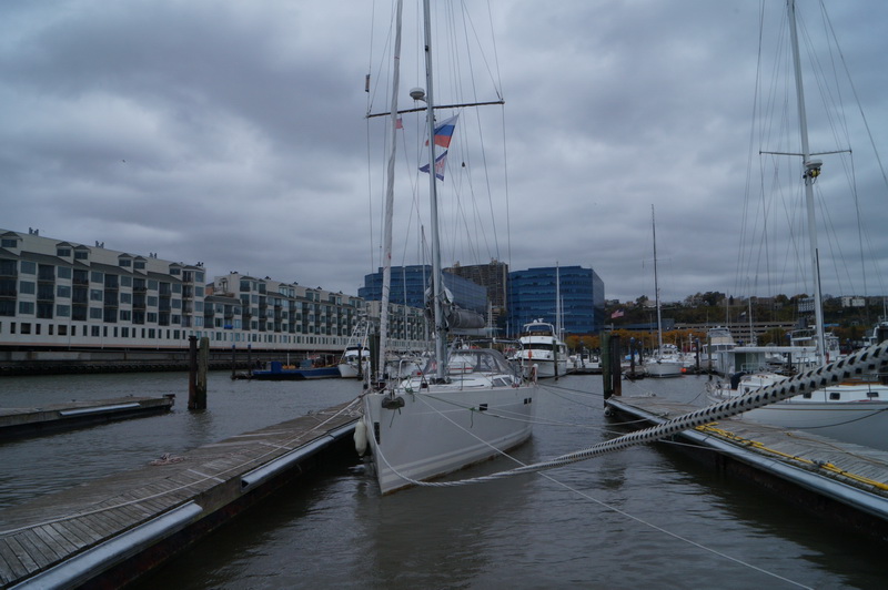 Начинаю вязать швартовы. Использую все веревки которые есть на борту. Стоим шикарно, между двух понтонов носом на запад.  Время от времени поглядываю на соседей — вокруг нас стоят настоящие пауки, столько швартовых мы с «Джульеттой»  еще не видели. Обвязываю паруса, убираю флаги, тент над кокпитом убран еще вчера.