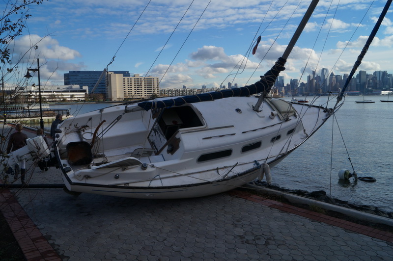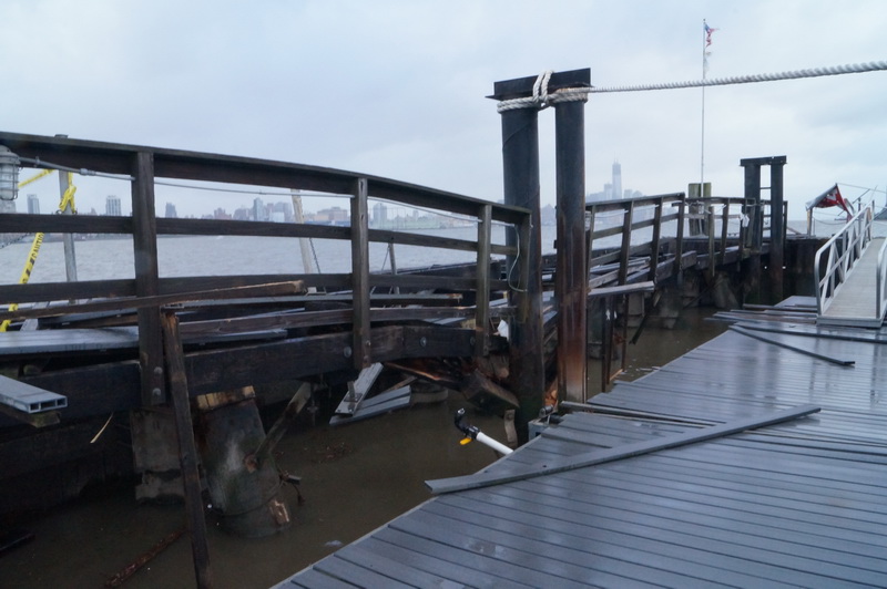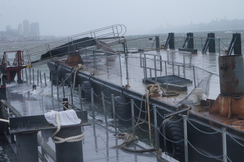 1130, вверх мимо нашей марины поплыли бревна и доски, один из наших причалов, тоже частично разрушен.  По середине Гудзона дежурят несколько спасательных буксиров.