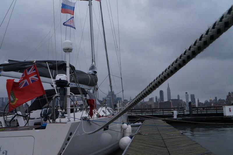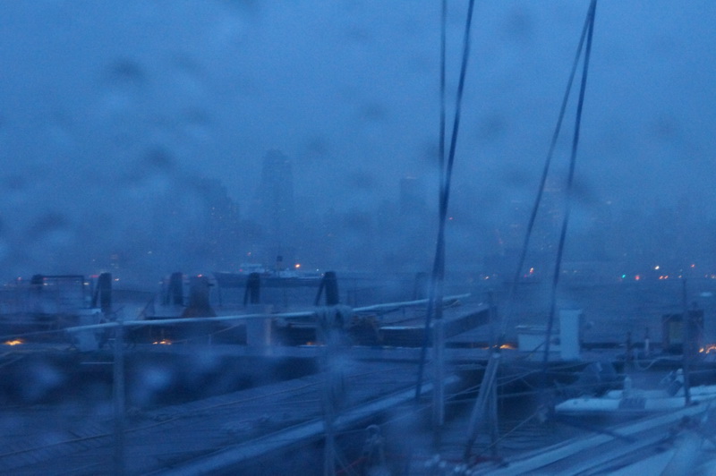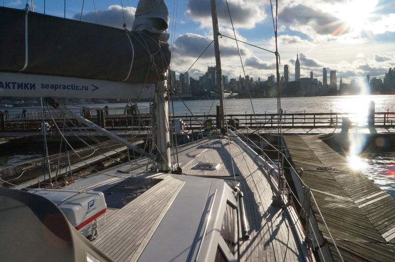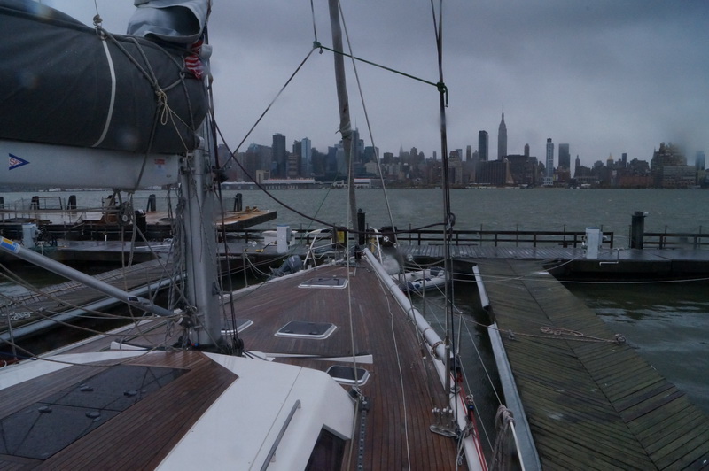 Ночь прошла спокойно. Ветер немного отошел к северу и качать стало меньше, но к утру снова зашел к северо-востоку. Начался прилив, течение пошло навстречу волне и теперь в Гудзоне сильно качает.