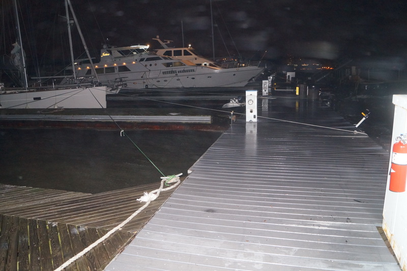 0630, сильная качка в марине. С юга заходит волна. Перевязывал швартовы. Понтон наш «дышит». Посмотрим, как он переживет еще один прилив.