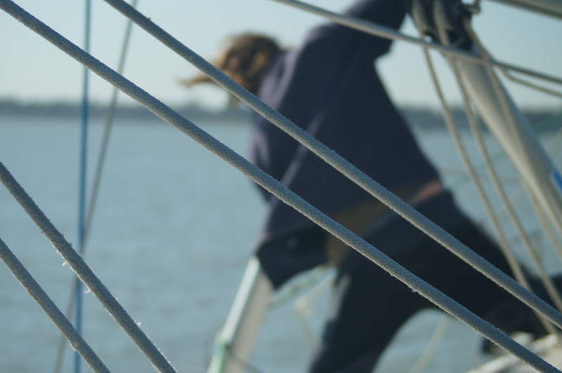 Пробовали лавироваться багштагами под парусами и толкаясь мотором. Идея такая:  если ветер дует  всего 10 узлов,  а лодка идет курсом  багштаг 7,5 узла, вы получаете около 13 узлов вымпельный ветер курсом острый багштаг. За него уже как-то можно держаться. Но не во всякую волну. Мы пытались. В какие то моменты кажется, что паруса зацепились за ветер, лодку подкренило, нет резких взмахов мачты, но приходит новая серия крутых волн, грот хлопает, как из пушки стреляет… В конце концов грот убрали, несем стаксель и толкаемся мотором. И это оказалось лучшим решением, да и волна стала мягче.