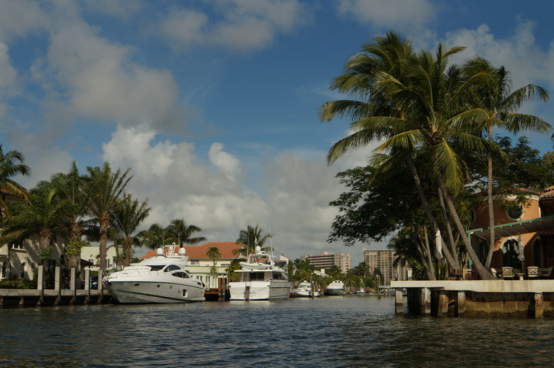Форт Лодердейл, называют американской Венецией. Воды здесь столько же сколько суши. Каналы, мосты, яхты припаркованные к самому дому. Водная полиция не дает нам покоя, на борту тузика обязательно иметь спас-жилеты со свистками а сам тузик должен быть зарегистрирован как настоящее судно.