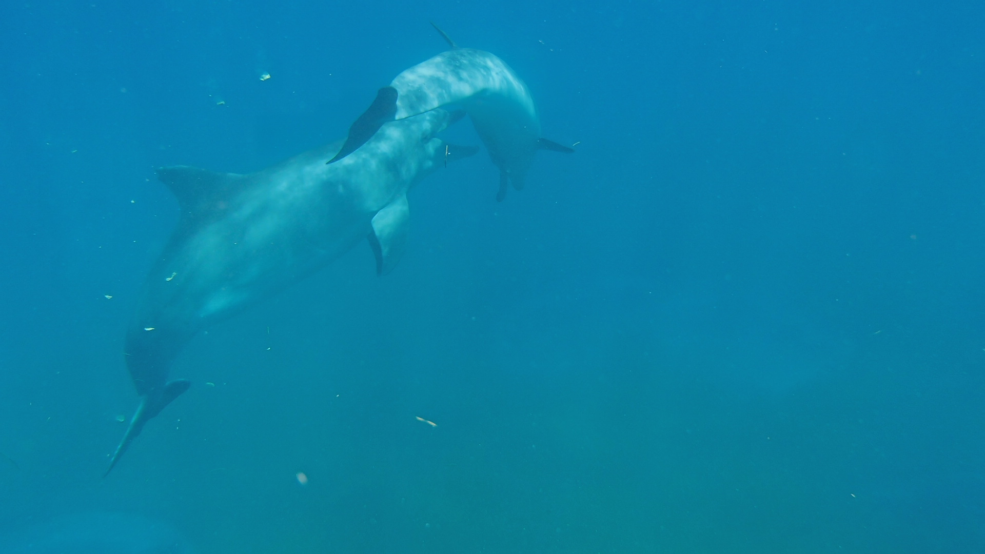 1125, встали на якорь у острова Grand Ilet. Тут-же к нам приплыли дельфины. Купались с нами. Играли. Девочка приносила во рту траву, открывала рот, крутилась под ногами, а  ее дружок ревниво покусывал свою подружку за спину около хвоста… Просто обалдеть!