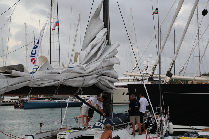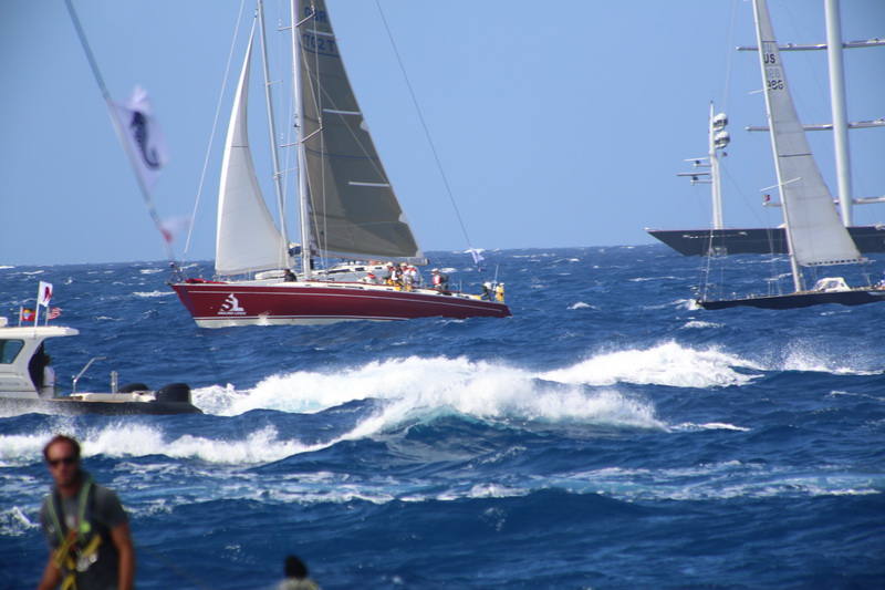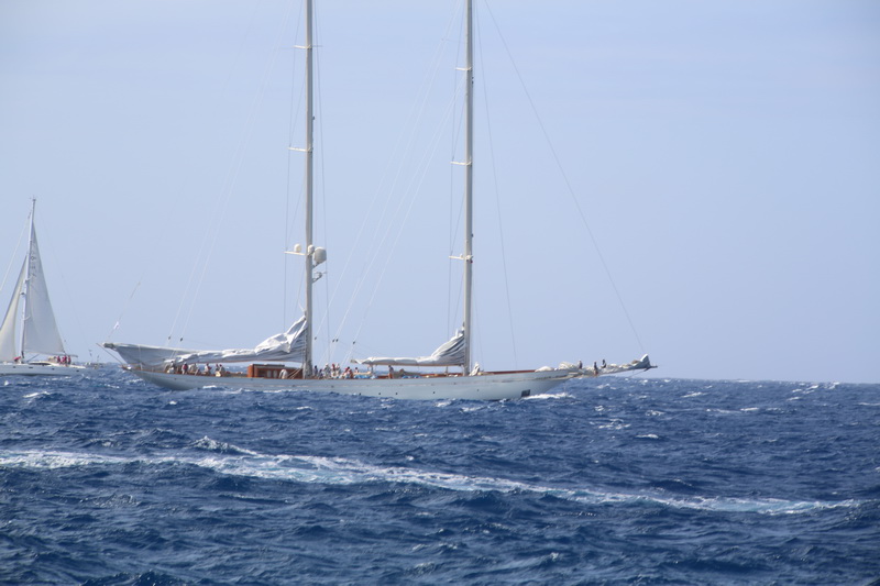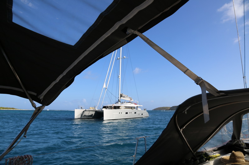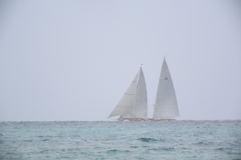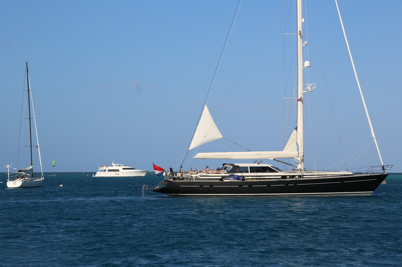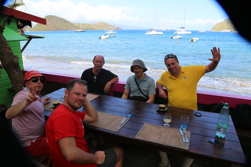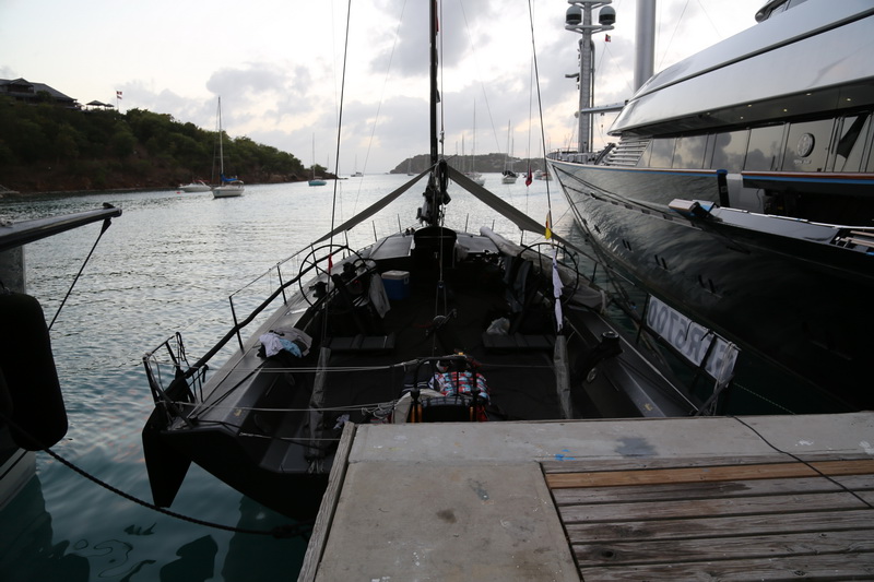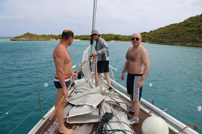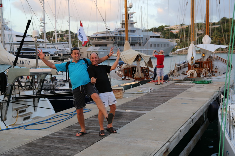 Наблюдая старт мы прошли несколько миль до якорной стоянки у Зеленого острова на восточной оконечности Антигуа.