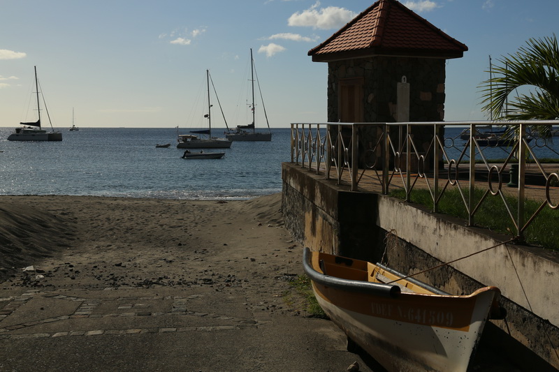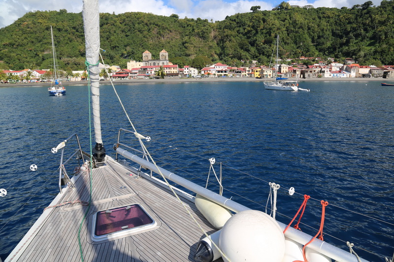 1930, встали на якорь напротив островка Пежон. Координаты 16*10.1N 061*46.8W. С высокого берега скатываются порывы штормовой силы до 30  узлов. То — что предполагалось как уютная тихая стоянка, оказалось перекрестком на семи ветрах. Выставили якорную вахту.