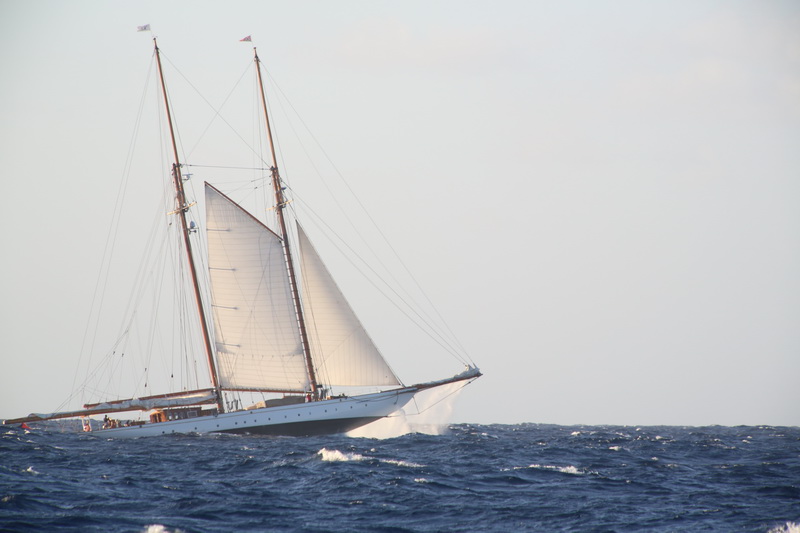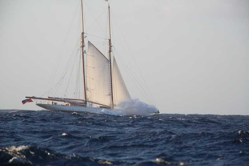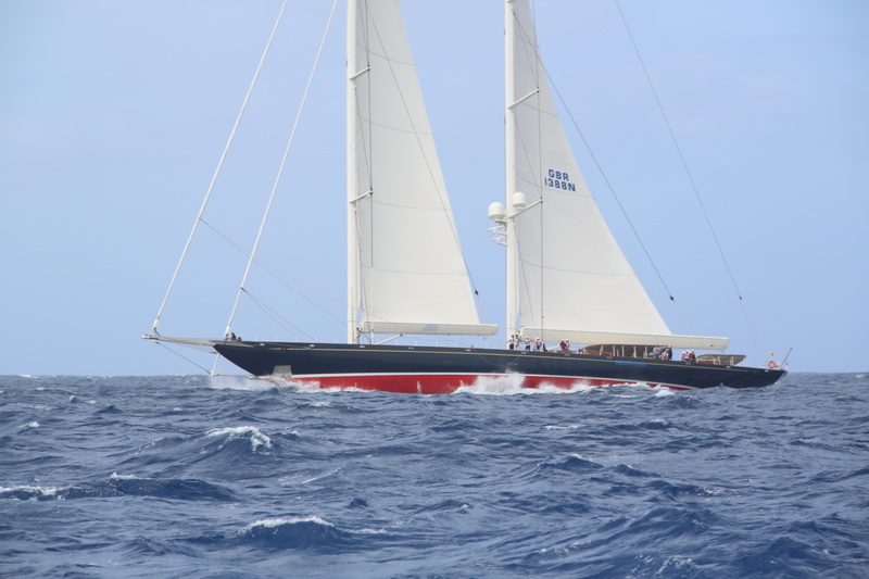 1040, вышли из под ветра Доминики. В проливе ветер до четырех балов. С востока подходит небольшой (надеюсь) шквал. Идем под гротом. Под ветром у нас буксир тянет баржу, если шквальнет – не сможем увалиться.