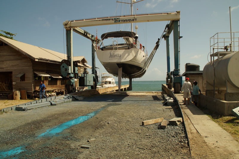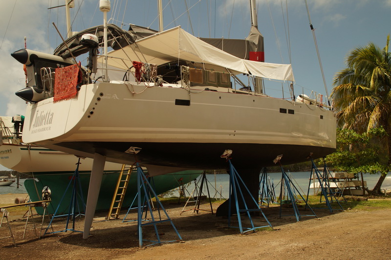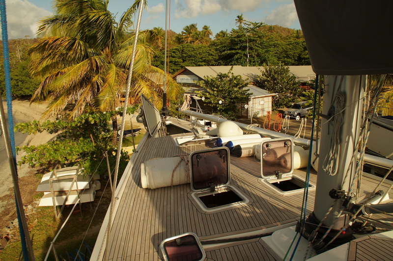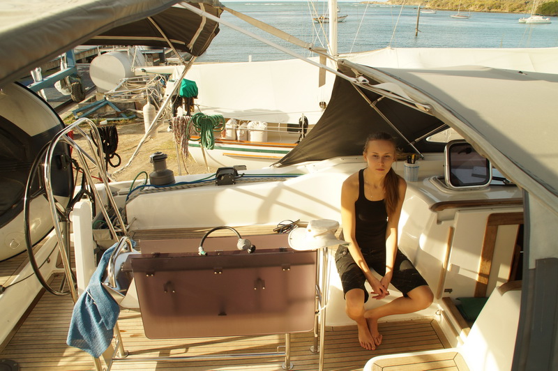 4 апреля. На борту «Джульетты» команда: Полина Шкаруба – первый помошник, Евгений Шкаруба – капитан. На кануне, совершив полсуточный перелет из Москвы в Нью Йорк и дальше в пекло Гренады — окунулись в заботы и хлопоты «Джульетены». Времени на раскачку нет как всегда. Завтра спускать лодку.