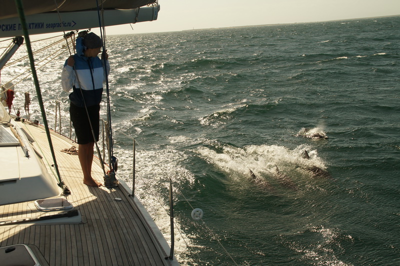 Большая стая дельфинов полчаса играла перед носом «Джульетты».