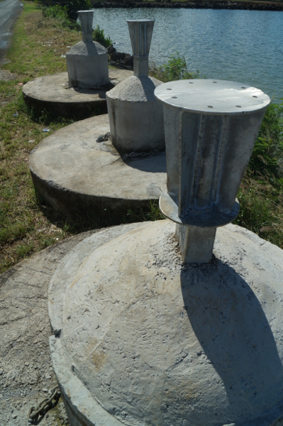 Но вот эти штуки привлекли внимание в самом начале прогулки. Что это? Бетонные присоски с такими странными навершиями из нержавейки. Почему такие мавзолейные формы? Вешки крепить? Наверное так и есть, просто здесь они такое.