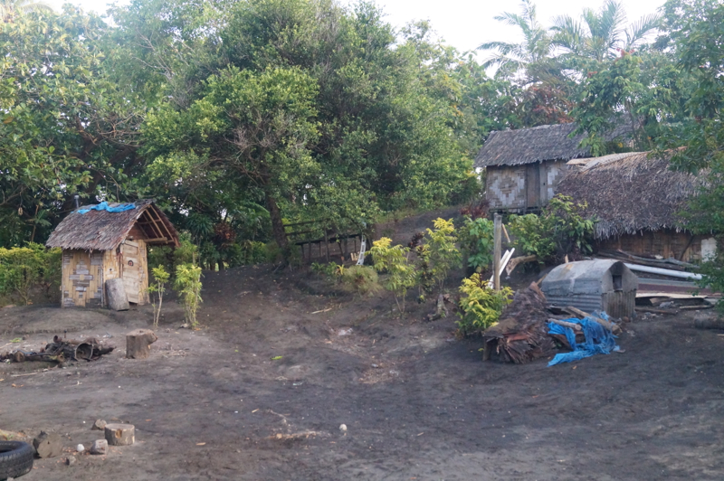 День выдался долгим и насыщенным. Встали совсем рано, в темноте приехали на берег на тузике. На лодке остались Ильяс и Полина. Поля посветила нам прожектором на дорожку и пошла досыпать. Деревня тоже еще не проснулась. Свет фонаря, который включил Франсуаз, помог найти дорожку среди хижин. Машины не было. Француаз пытался дозвониться до водителя, но без результатно. Сказал нам, что нужно подождать. Мы разбрелись кто куда.. Леха прилег на скамейку в кава-баре, я выбрал деревянный помост посреди поляны. Днем и вечером здесь под деревом проводит время мужская половина деревни. Пьют каву, разговаривают. Сейчас помост был свободным, я лег и попытался уснуть. Запели петухи. Точнее закричали, стараются перекричать друг друга своими сорванными глотками. В местных деревнях люди живут плотно и петухи соответственно. Слышно всех: самых ближних, соседских, и тех, кто на окраине. Петушиный хор повис над деревней. То, что было спрятано среди зелени, проявилось в петушиной многоголосице. Казалось, они никогда не заткнутся, но вот петухи постепенно уступили место певчим птицам. Вот это было действительно красиво. Я уже смирился с тем, что не уснуть и стал слушать дальше. Даже с закрытыми глазами чувствовалось, что вокруг светает. Проснулись и захрюкали свиньи, послышался звук шагов и звон посуды в домах. Вдруг рядом запела женщина, негромко, но очень мелодично. Мимо меня начали проходить люди: старая женщина добродушно посмеивалась, наверное, подумала, что я обпился кавы и лежу здесь с вечера. Пришлось открыть глаза, отвечать на приветствия и пожелание доброго утра. Наконец, появилась машина и мы поехали к вулкану.