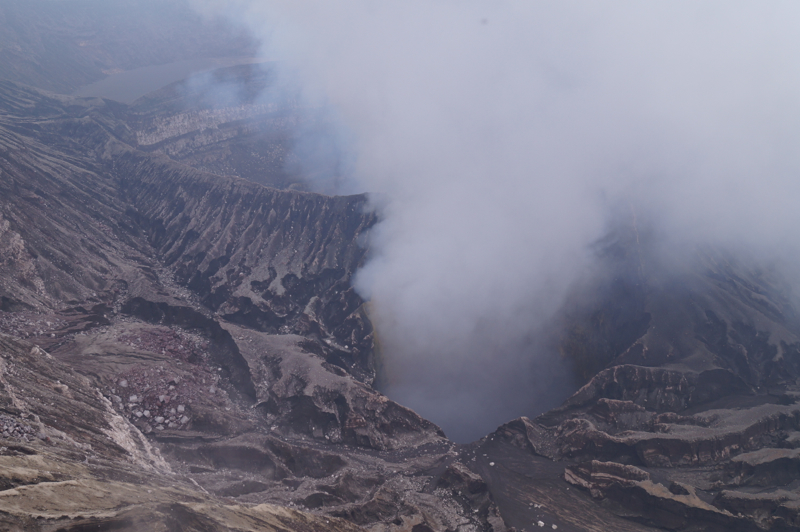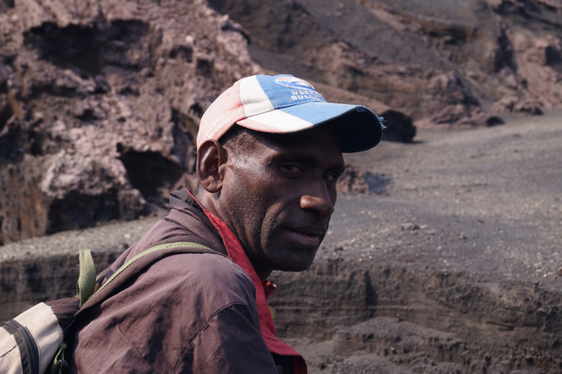 Через четыре часа пути мы подошли к самому подножию вулкана Ben-bow. Подъем к границе кратера не назовешь легким, но он недолгий, всего четверть часа. Из огромного провала идет дым, видны отблески пламени и слышен гул кипящей лавы. Рядом с Ben-bow есть еще два действующих вулкана, Француаз предложил «прогуляться» и к ним, чтобы «сделать хорошие картинки», но мы договорились сделать это в следующий раз, через год.