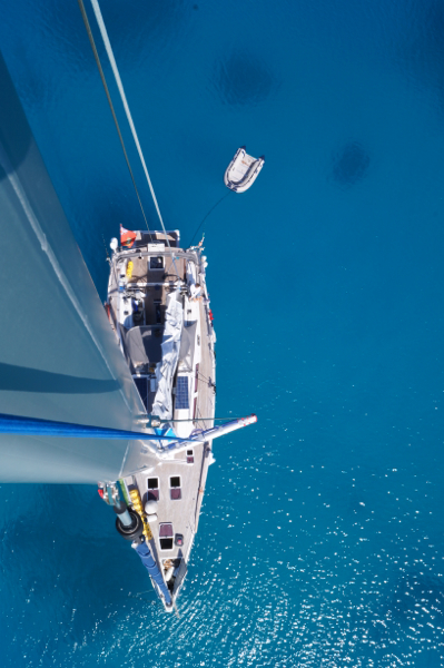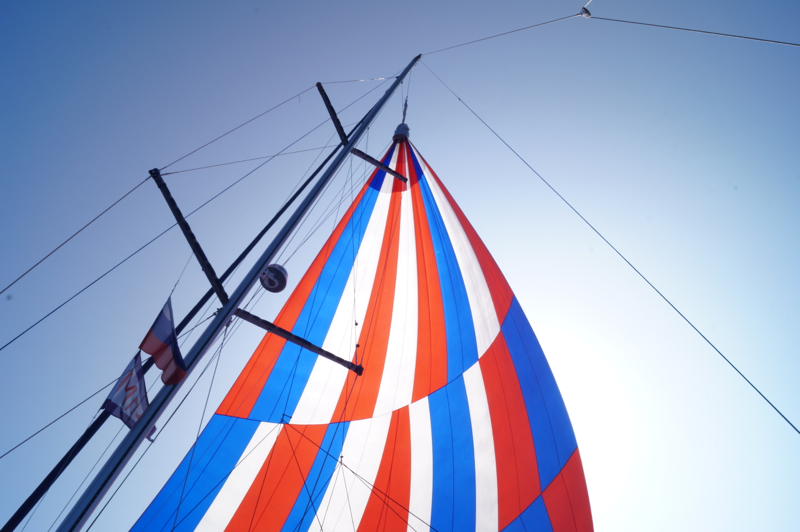 1830, резкая крутая волна в борт. Лодку тяжело держать на курсе. Убрали грот. Идем под одной генуей со скоростью 8 узлов.