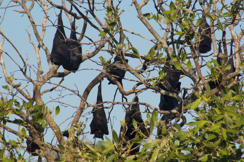 Здесь же в зарослях, точнее, на зарослях висят тысячи летучих лисиц. Отдыхают перед трудовой ночью. Нормальное соседство: в городе повсюду висят вампиры…