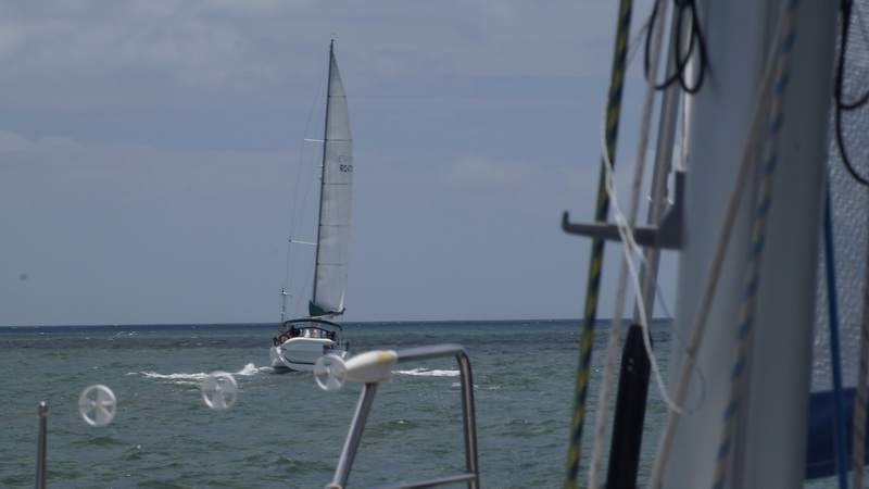 1725, убрал грот, поставил геную. Вокруг грозы и перед нами сложный фарватер, решили дождаться Грехема и Сюзанну. Пристроимся за ними.