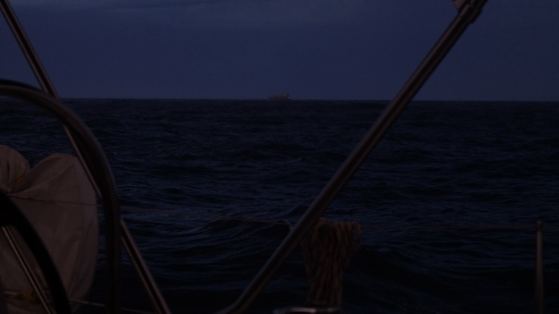 1330, происшествие на пустом месте: Грехем вдруг решил перейти на левую сторону канала, сообщил нам по рации. Естественно, мы повернули за ним. В середине канала над нами неожиданно навис нос большого грузового судна. Ели успели убраться с его дороги. Грузовик погудел нам, поругал на 16 ом канале, потом Грехема отругала береговая служба. Мы отмалчиваемся.