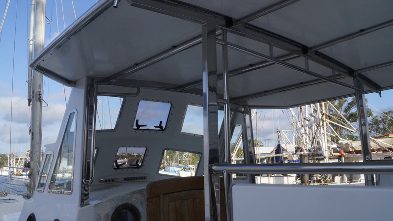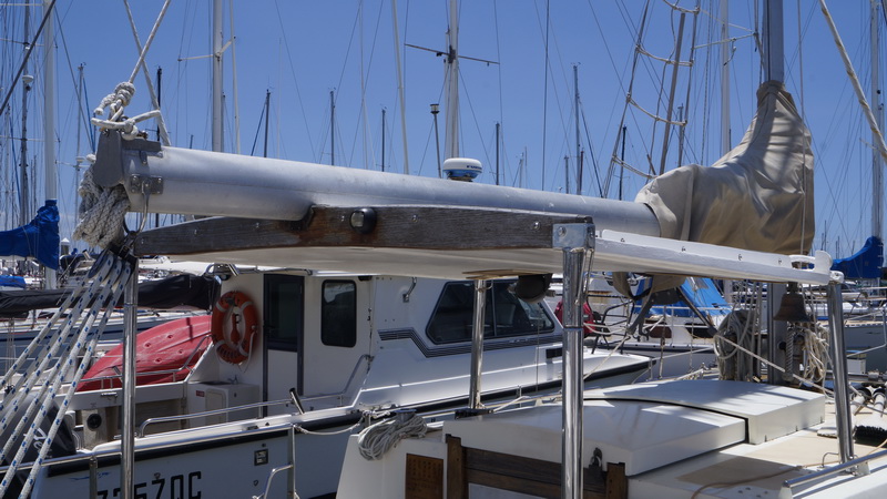 Жесткая крыша над кокпитом. Удобная вещь, если не гоняться в лавировку. И гик можно положить, и солнечные панели, и рынду повесить, и много еще чего. Плюс два квадратных метра поверхности.