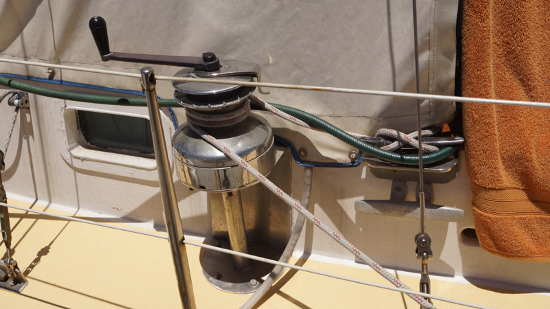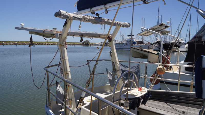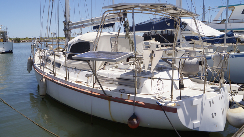 Многофункциональный кронштейн на корме. Здесь и солнечная панель, и крепление тента, и ползун гика-шкота, и два (!) кормовых якоря.