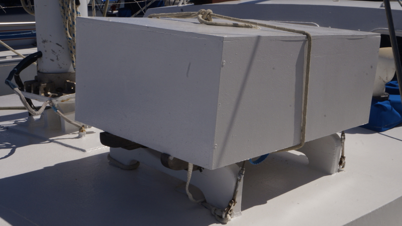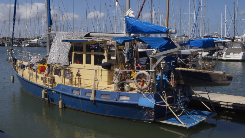 «Oliva Hala», армоцементный кэч постройки 1982 года. Проект Джона Бернарда. Лодка хорошо сложена — сочетание мягких бетонных обводов корпуса с прямоугольной деревянной рубкой.