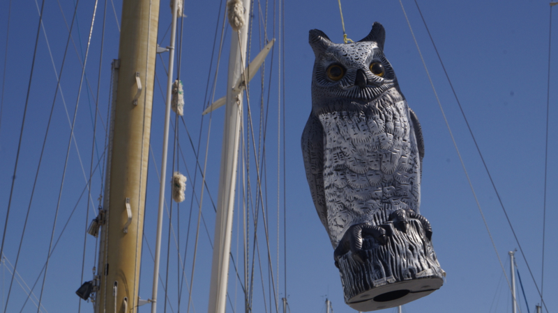 Сова вместе с постаментом болтается в воздухе. Отпугивает птичек. Как это действует? Фэйсбук иногда распознает скульптурные изображения как живые лица. Может здесь быть что то общее?