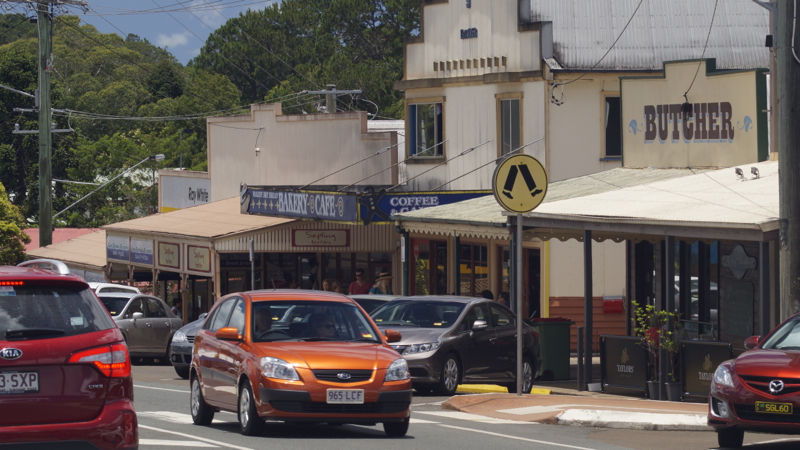 Первый город на пути — Малени. Центральная улица во власти магазинов и кафе.