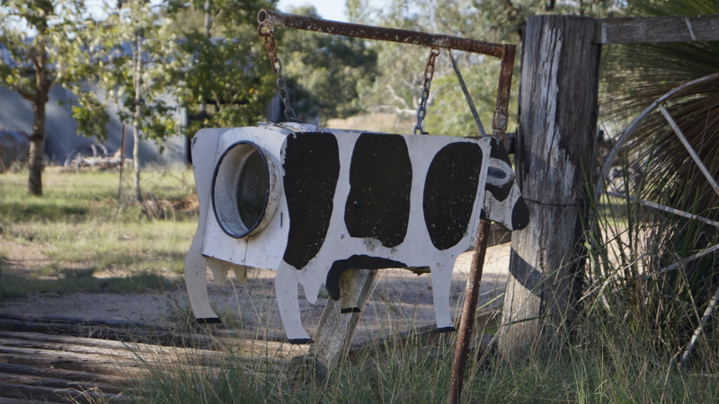 Одной из точек приложения чувства юмора и вкуса у местных жителей служат почтовые ящики. Фермеры чаще всего их делают из старых молочных фляг. У этого хозяина, наверное, младший брат почтальон.
