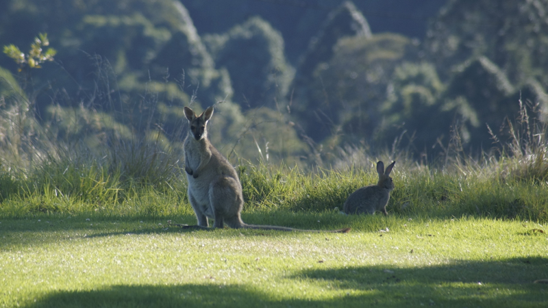 Мы подъехали к месту сегодняшнего ночлега, национальному парку Bunya Mountains. Кенгуру, точнее валлаби, здесь полно. Пасутся среди машин на лужайке.