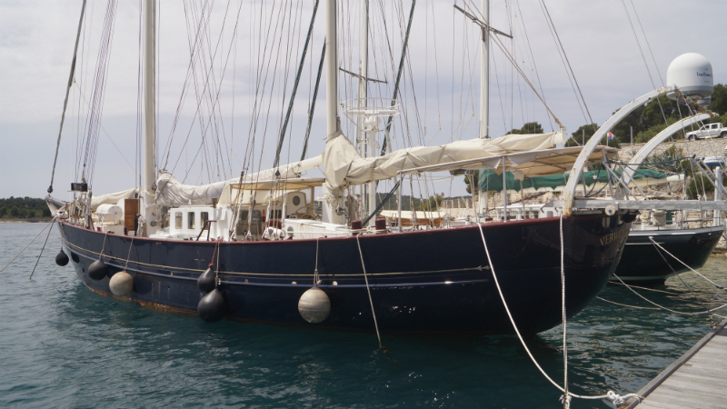 Случайно на Браче увидели этот стальной кэтч длинной в 24 метра. Нам для клуба нужно искать что-то подобное. К сожалению, никого не было на борту.