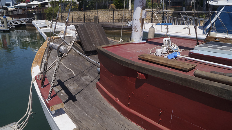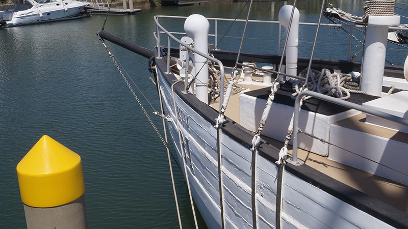 Так вот: сосед по левому борту каждые пару часов сливает воду из системы охлаждения. По всему видно, что это ретро-рыбак с большим холодильником в трюме. Обратите внимание на раздвижные штанги-балансиры: не дают судну раскачиваться и, наверное, позволяют закидывать невод пошире (догадки).