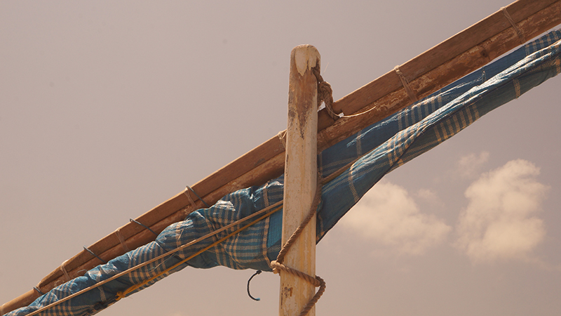 Крепление реи. Фала как такового нет. Рея с парусом легко снимается и опускается вниз.