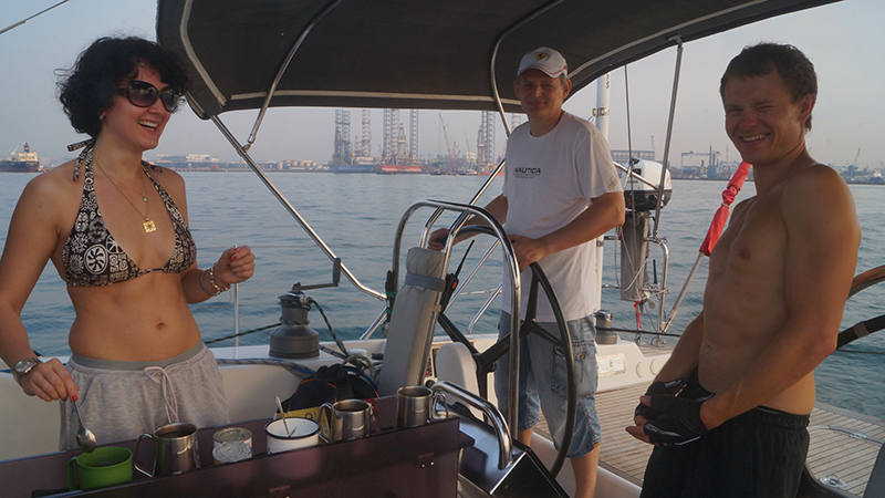 Наташа оказалась в Сингапуре по делам и присоединилась к нашему плаванию. В Раффлес марине наряднее, не качает, много интересных лодок у причалов, но хуже интернет и нет того замечательного парка под боком как в Яхт-клубе Сингапура.