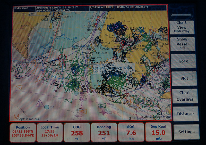 1850, вышли в Малакский пролив. По курсу и вокруг нас стоят грузовые корабли.