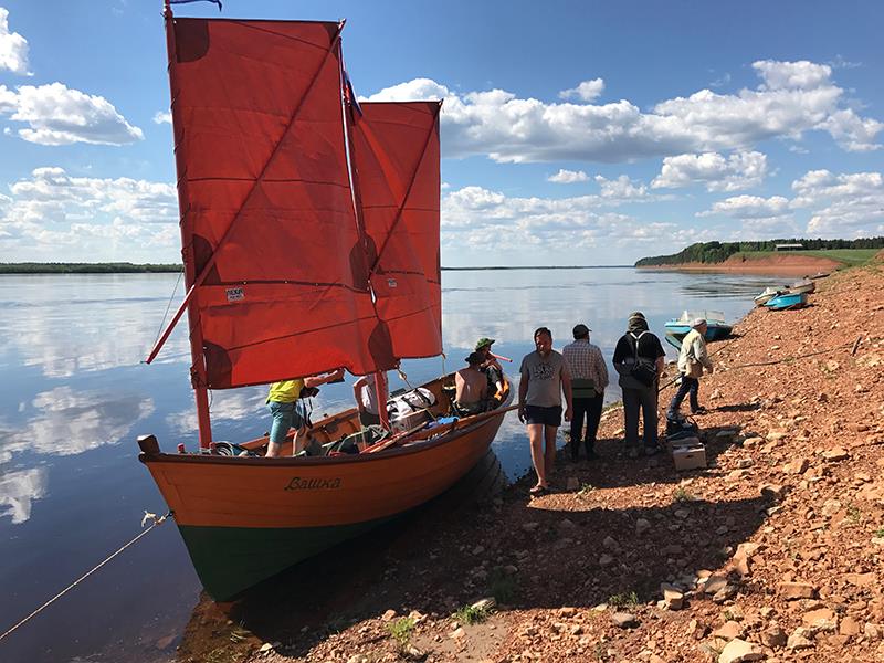 За два дня нам предстоит пройти больше ста километров вниз по течению Мезени. Хотя осадка нашего карбаса сейчас без дополнительного фальшкиля совсем неболшая, сантиметров сорок, в обычный год в это время нам пришлось бы везти карбас по дороге. Мезень в это время уже очень сильно мелеет. Мы так и планировали. Но позднее лето на Севере задержало процесс таяния снегов, Мезень сейчас по-весеннему полноводна. Точнее, полноводна она была две недели назад, когда мы начали строить карбас. Листья распускались, вода падала, мы строили карбас и гадали, успеем или нет спуститься по реке?