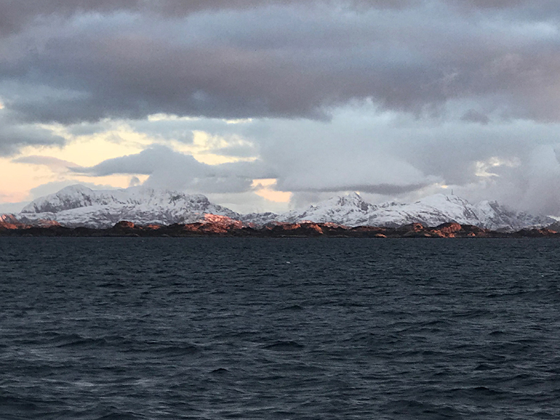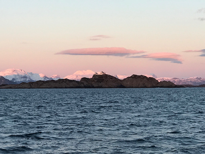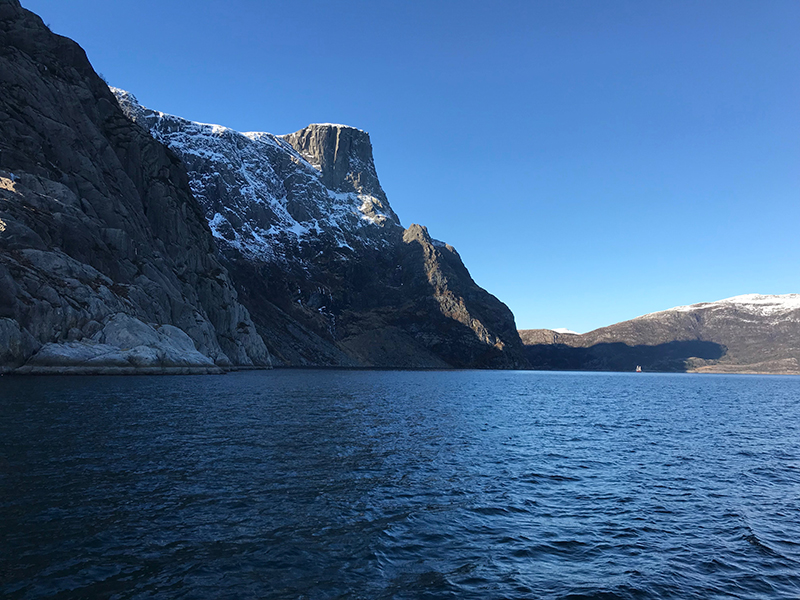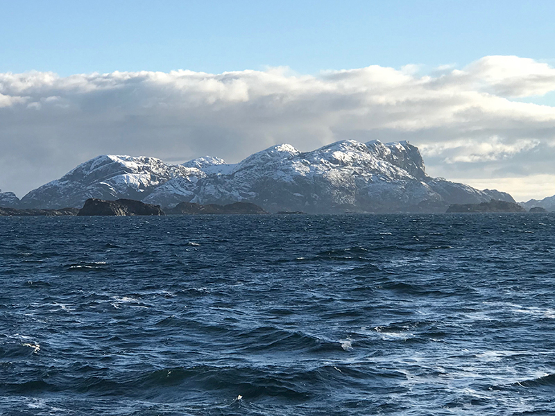 0909, прошли фьордом, выходим в море.