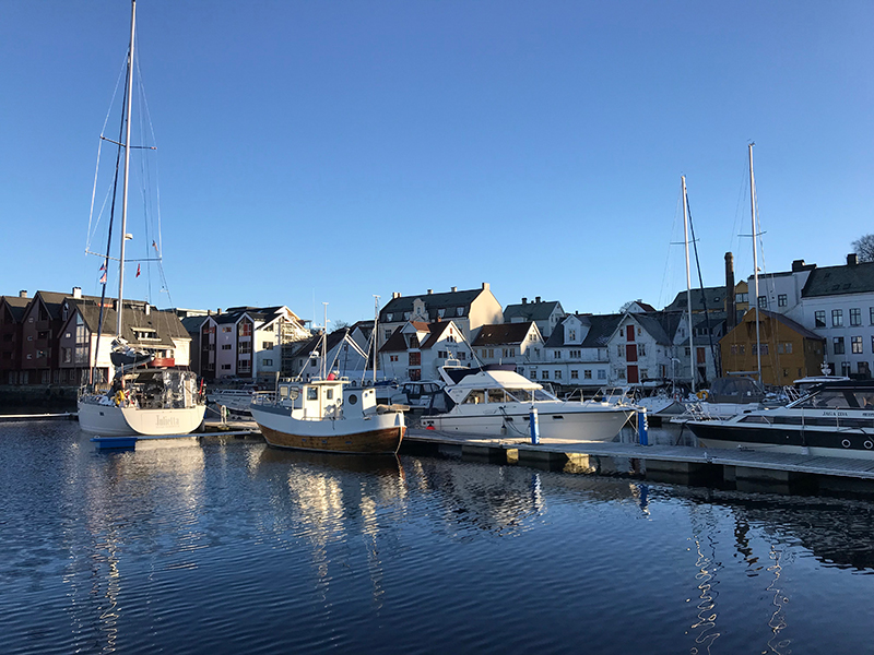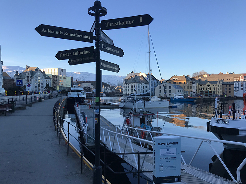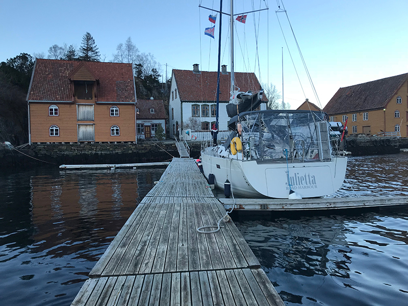 1850, пришли в Олесунд. Нашли понтон в самом центре города. С электричеством и рестораном напротив. Всё хорошо, этап закончен.