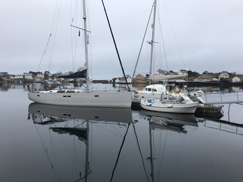 1730, пришли в Киркенес. Заброшенный полузатопленый понтон, но есть электричество. Координаты 61*53.1’N 5*19.8’E.