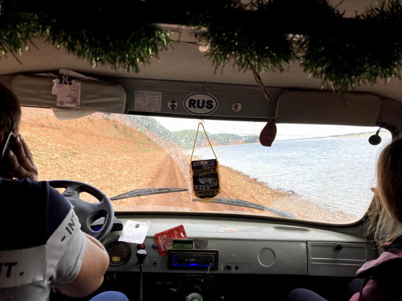 0820, выехали. Водитель сказал, что ехать будем долго, так как последние пару дней шёл дождь и мезенскую дорогу наверняка размыло. Егор и Лёша рассказывали об этой дороге и, судя по всему, водитель прав. Надеюсь, прибудем к 20, позже сложно будет найти Алексея, который должен отвести нас к лодкам.