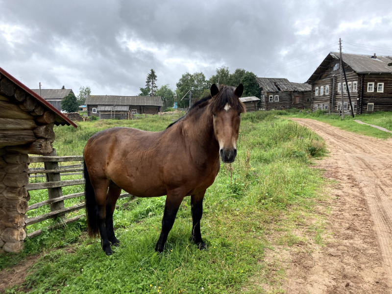 2100, проходя такой длинный маршрут, неизбежно сливаешься с окружающим, погружаешься в контекст местности и происходящих с тобой событий. Баня в Кимже стала для меня апогеем этого погружения. Мы, утомлённые, прошли сквозь деревню до дома Валентины Петровны, хозяйки бани и нырнули в жаркую парилку. Хорошенько прогревшись, мы вышли на свежий воздух, спугнув соседских девчонок, убежавших в дом напротив, чтобы стучаться в окно второго этажа и каждый раз пугаться, когда мы обращаем внимание на их проделки. В это время на периферии замаячил гнедой жеребец, который гулял по улицам Кимжи уже погрузившимся в сумерки. Из соседнего дома выскочил мужик и ринулся в атаку на коня, который незамедлительно ретировался, а мужик направился к нам. Состоялся диалог, суть которого изложу, но за точность цитирования не поручусь: