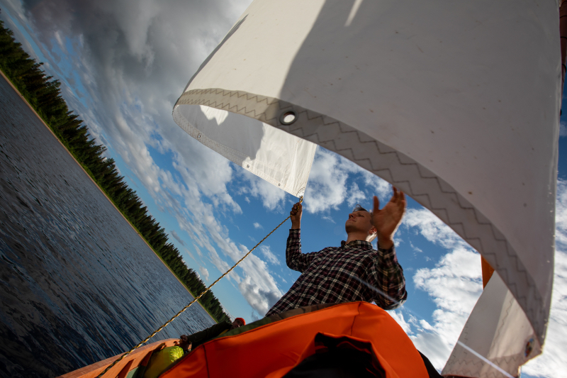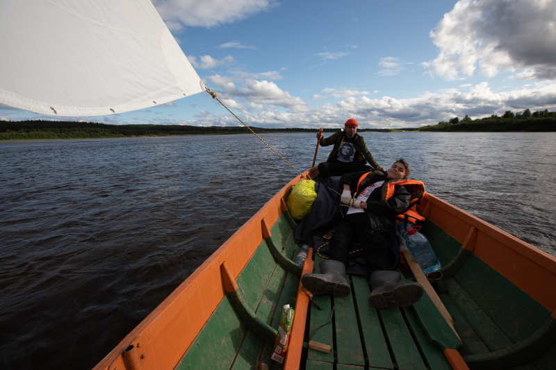 0700, подъём. Сегодня много дел. Нужно рассортировать продукты, проверить снаряжение лодок, навязать парус на мачты. Наши лодки — это «Шалман» и «Шарманъ» — карбаски, построенные пару лет назад мастером из Лешуконского — Виктором Петровичем Кузнецовым. В их названиях я нахожу что-то цыганско-французское.