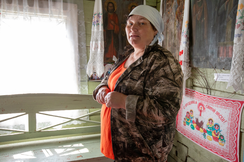 В часовне Мария Ананьевна рассказывает про историю Ценогоры.