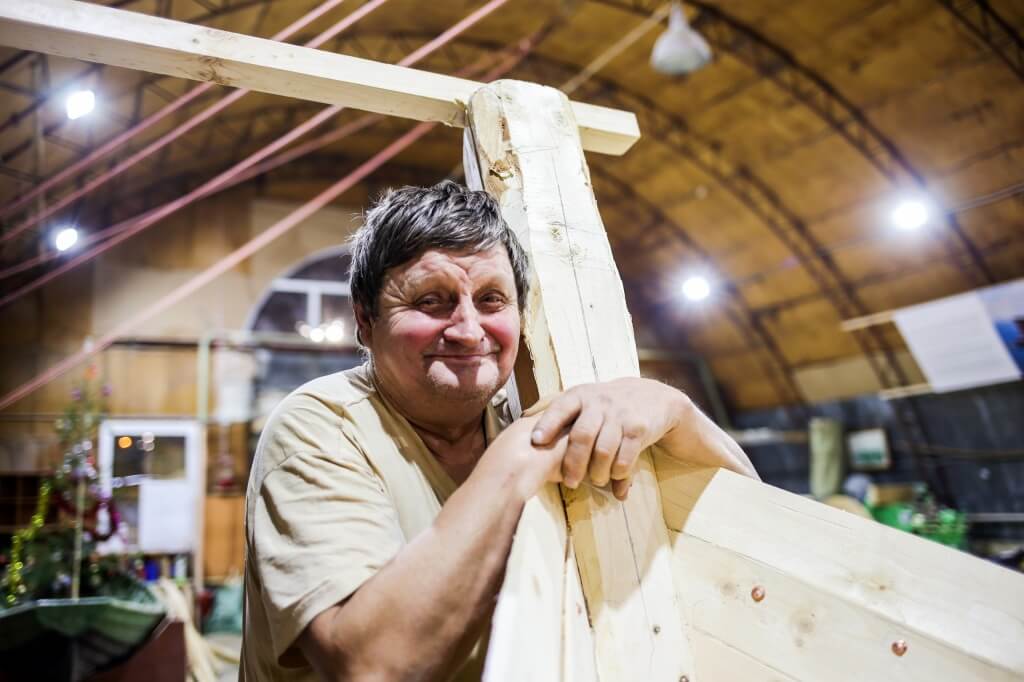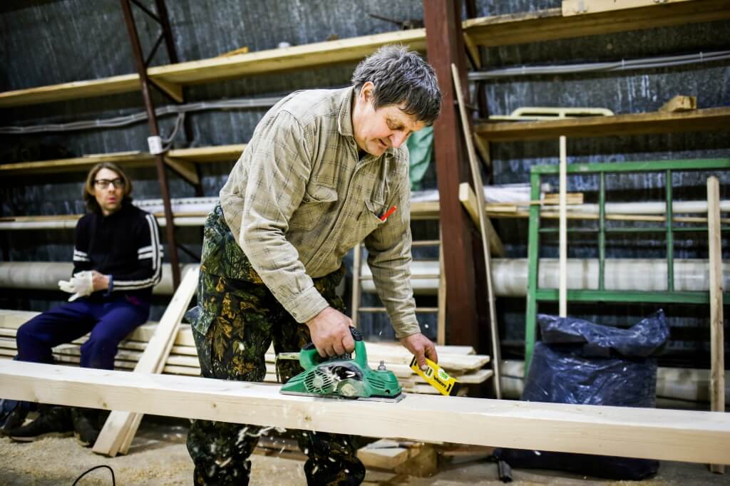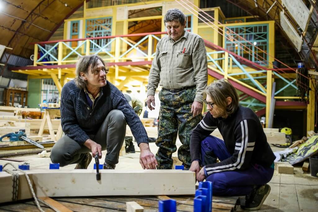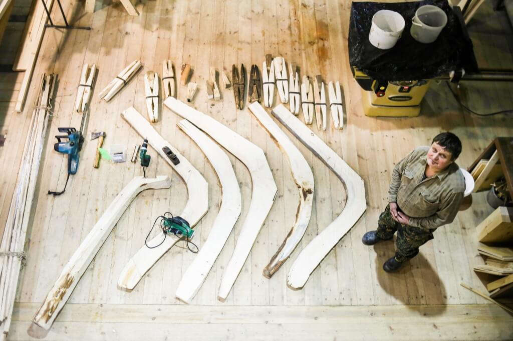 Знакомьтесь – мастер народного судостроения Виктор Петрович Кузнецов! Виктор Петрович родом с Мезени, ему шестьдесят девять лет, и шестьдесят шесть из них он держит в руках топор. Он учился на педагога, работал пожарным парашютистом, построил больше ста лодок и сегодня шьет первый карбас Товарищества Поморского судостроения. Его образ увековечен в прозе и устных преданиях участников проекта, и даже в половине второго ночи на верфи стучит его молоток!