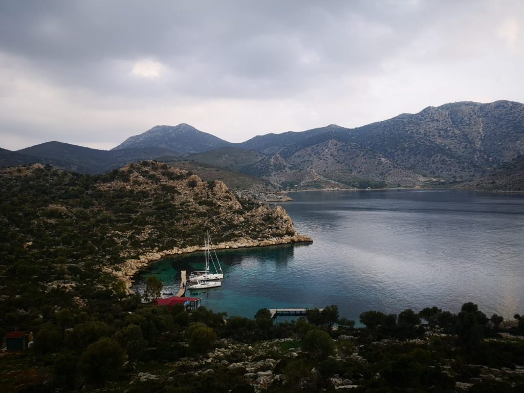 1000, приняли лодки. Как всегда нужно не забыть много мелочей, типа спросить, где предохранители якорных лебедок, переключатели баков с водой и прочее. Смутил звук работающего подруливающего устройства. По всему — сломан винт. Турки не поверили, но в чек-листе мы поставили соответствующую галочку. Попросили пару дополнительных кранцев, теплые одеяла — и готовы выйти в море. Погода теплая, около 20 градусов.