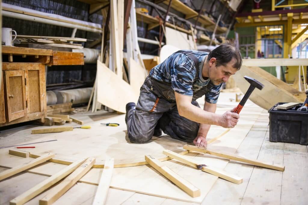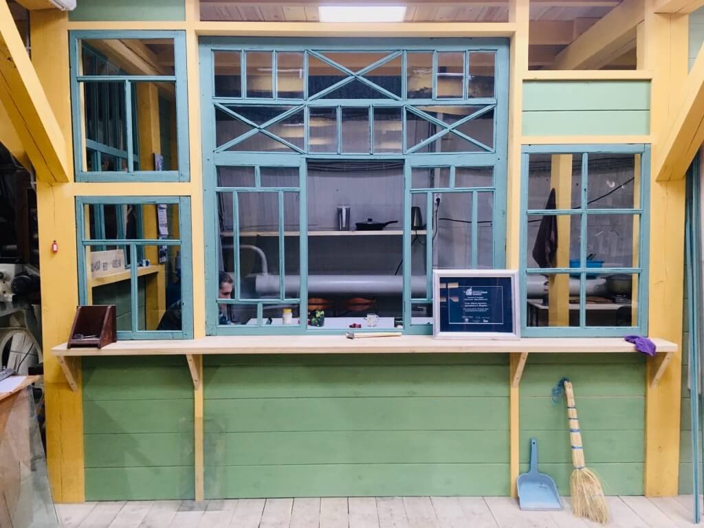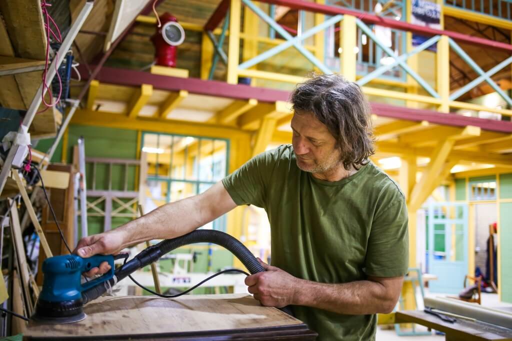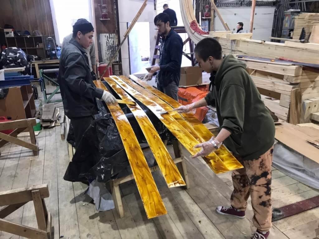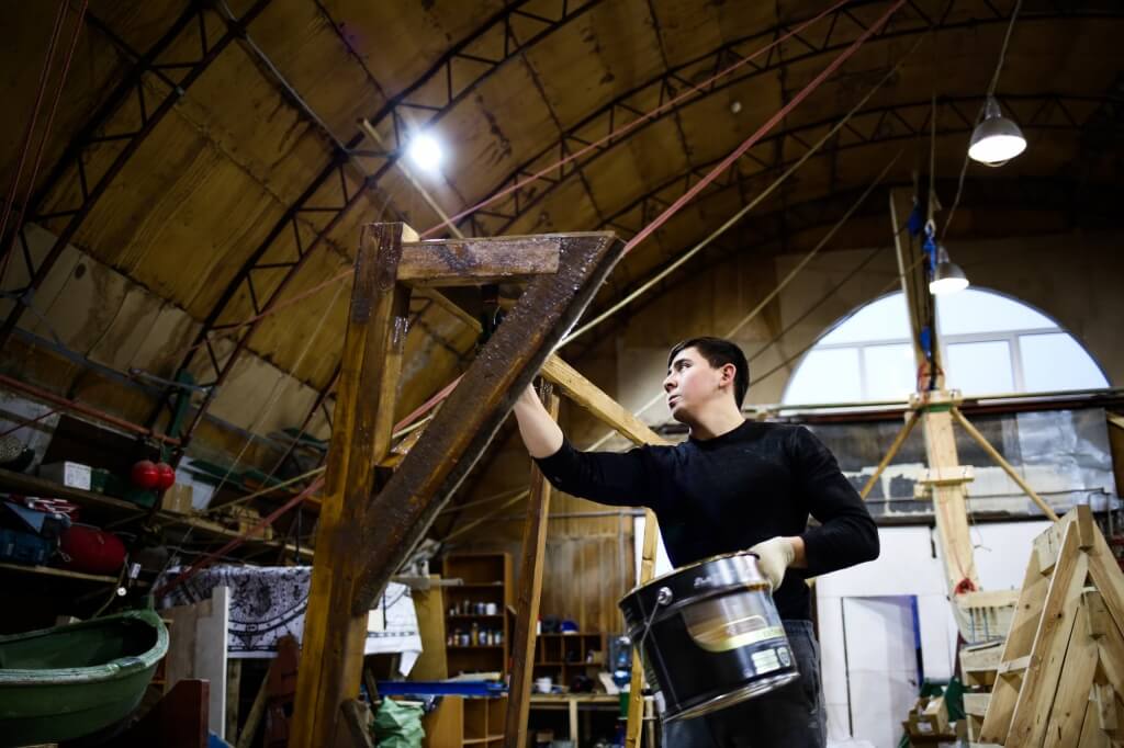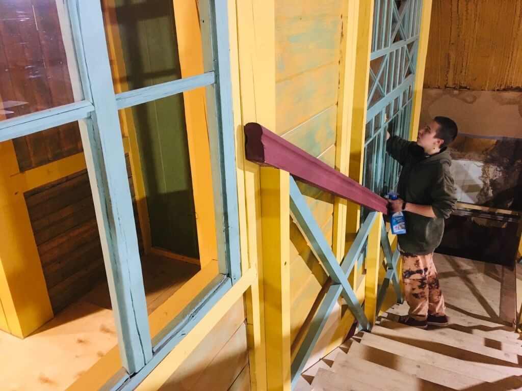 Даша заканчивает делать винтажный верстак, который будет частью интерьера «Открытой палубы».