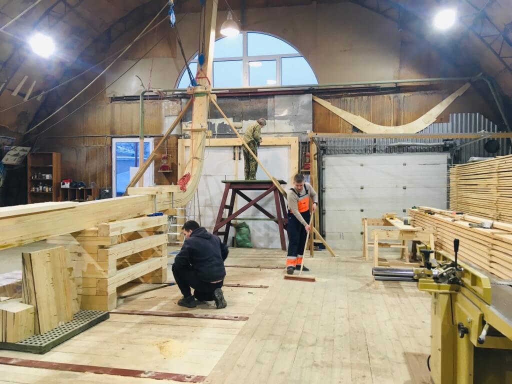 Сегодня основное, чем мы занимаемся – это подготовка судна «Архангелъ» к сдаче. Сделали киль-блоки для его перевозки, закончили устанавливать шесть весел. Идут какие-то небольшие доработки, которые никогда не кончаются, пока судно не сдашь.