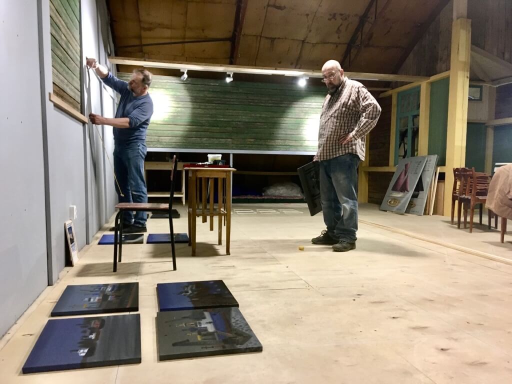 Идет подготовка к выставке «Плавсредства, нарисованные в Архангельске в апреле 2021 года». Художник Александр Флоренский развешивает картины наверху, ему помогает автор «Открытой палубы», художник и архитектор Александр Антонов. Картины постепенно занимают свои места на стенах. На палубе заколочено последнее окно в Европу (ладно, просто окно). Женя говорит, так лучше. Федор приводит в порядок чертежи архива Соломбальской судоверфи. Большая часть материалов разобрана по папкам и темам (шлюпки спасательные, шлюпки рабочие, моторные боты и т.д.), а вот номерные папки представляют собой некоторую сложность. Это папки, в которых, к примеру, собраны вместе разрозненные кальки 1942-1944 годов: после чертежа закладки йолы в них внезапно следует чертеж топора. Чертежи разных элементов одного судна могут оказаться не вместе, а в разных папках. Все это нужно привести в порядок перед сканированием, а также составить списки всех чертежей каждой папки и определить, что из этого пойдет в проект «Заветфлот». Чем и занимается Федор. А Никита приварил вешалку для шаблона шпангоутов и продолжает варить струбцины. Алексей с Вовой гнут и клеят шпангоуты, строгают доски для карбасов и шхуны. В субботу будет еще один день монтажа «Плавсредств», а завтра, в воскресенье, в 18:00 ждем всех на открытии выставки в рамках театрально-музыкального фестиваля Транзит!