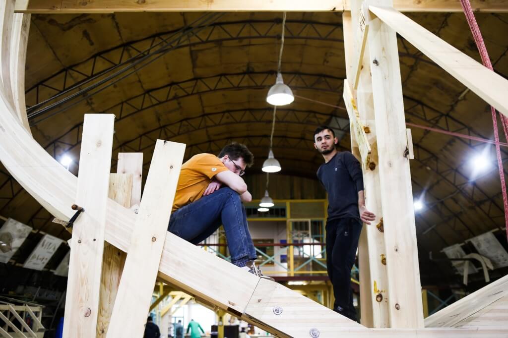Работами по выклейке руководят Сергей Егоров и Женя Шкаруба.